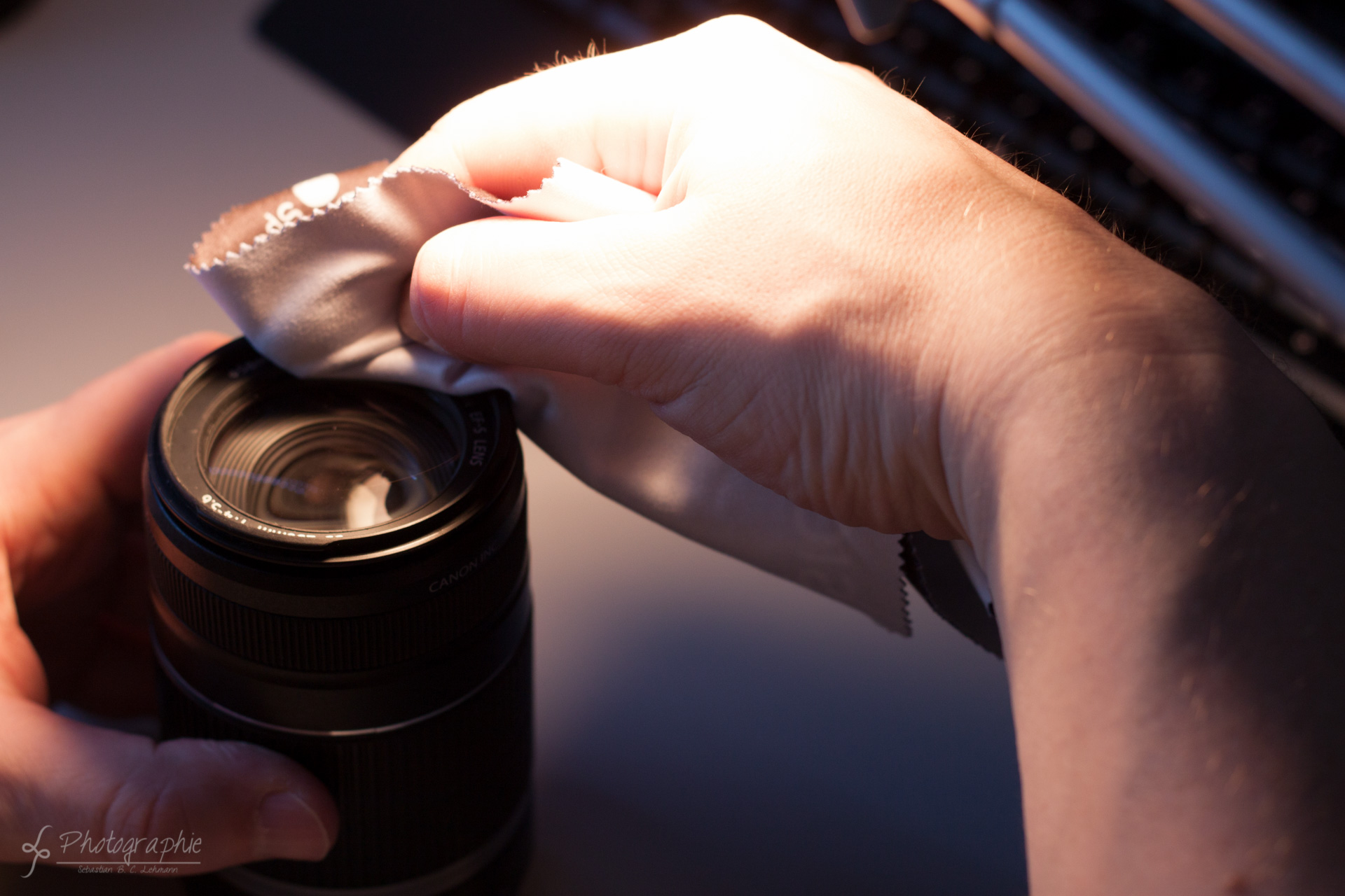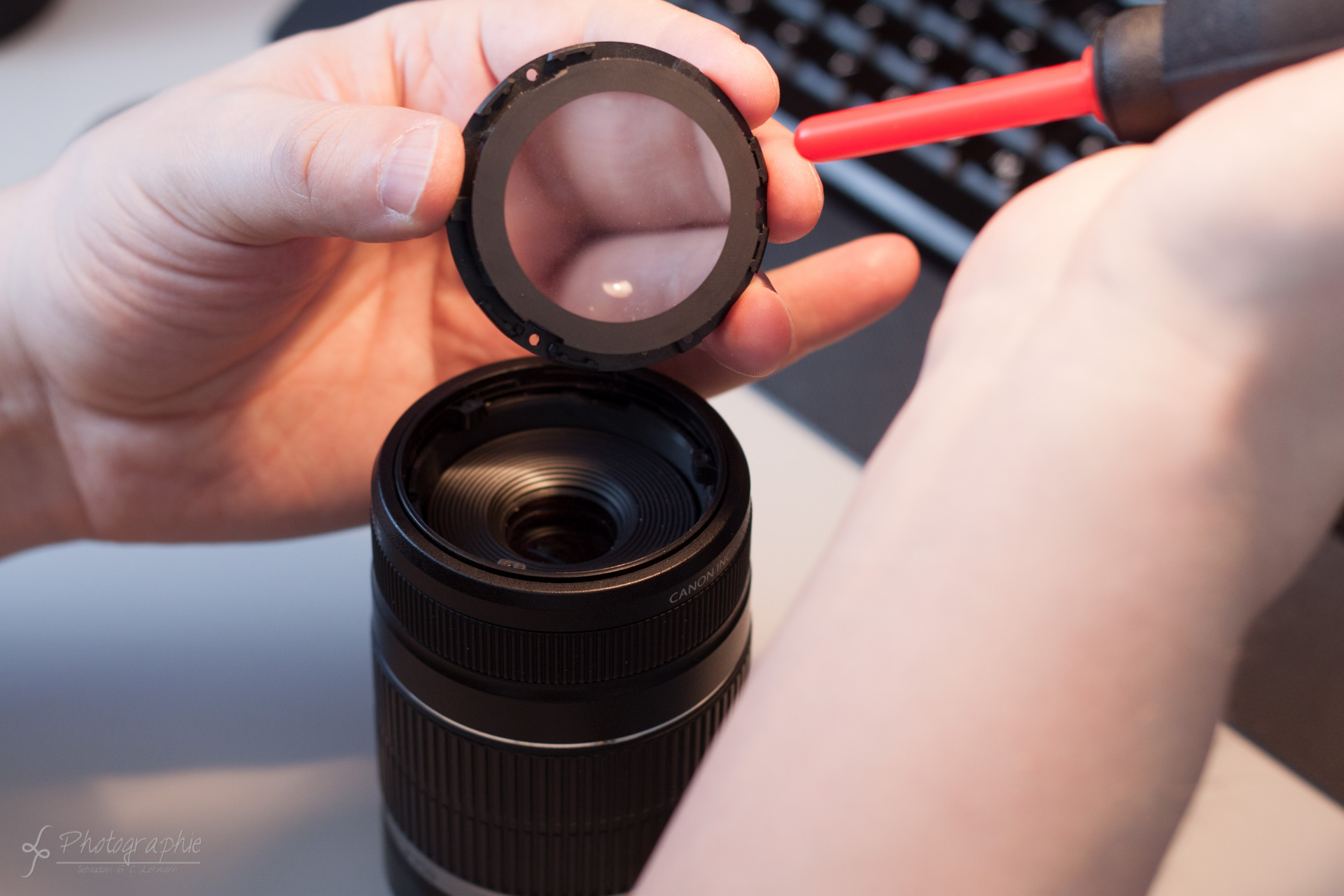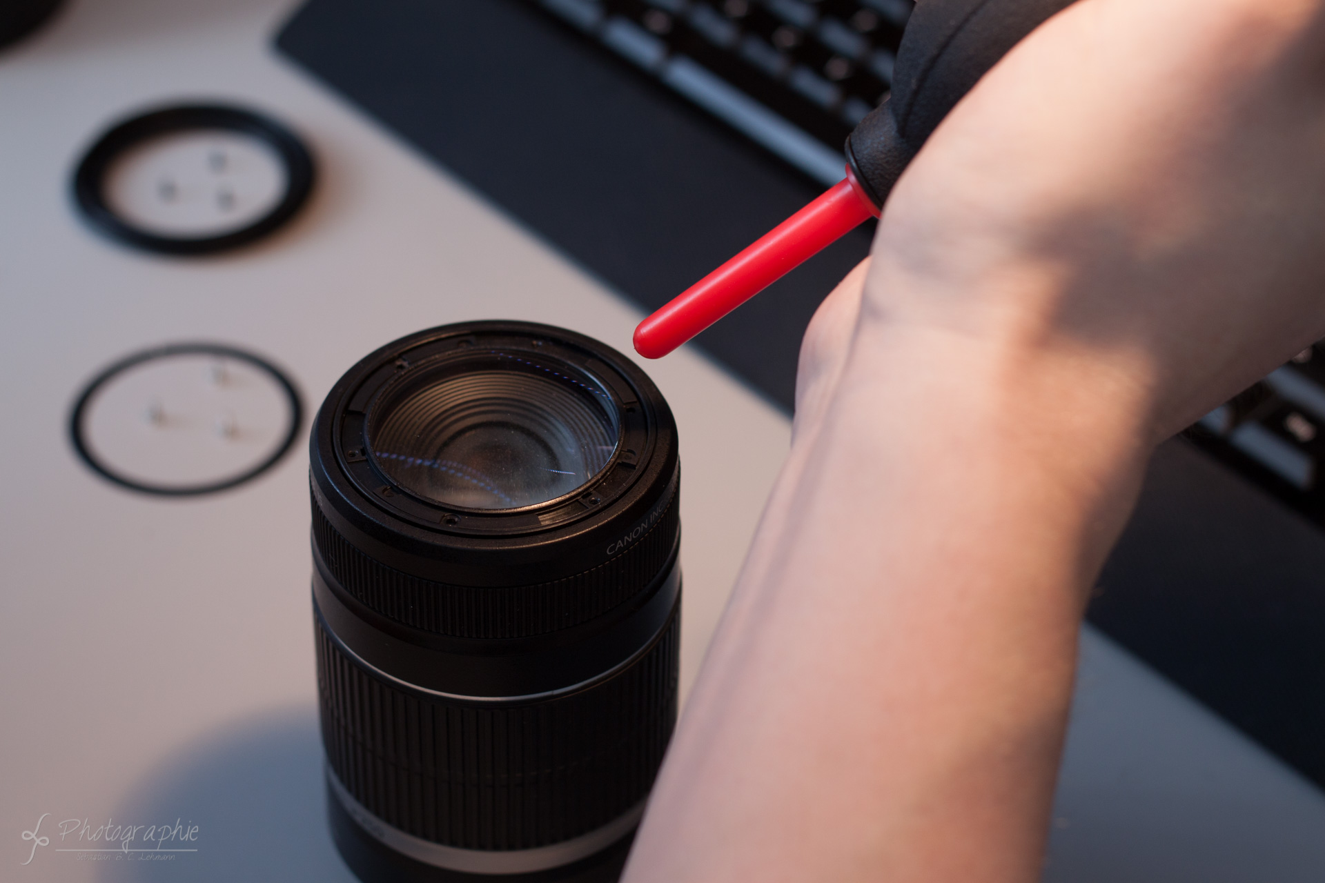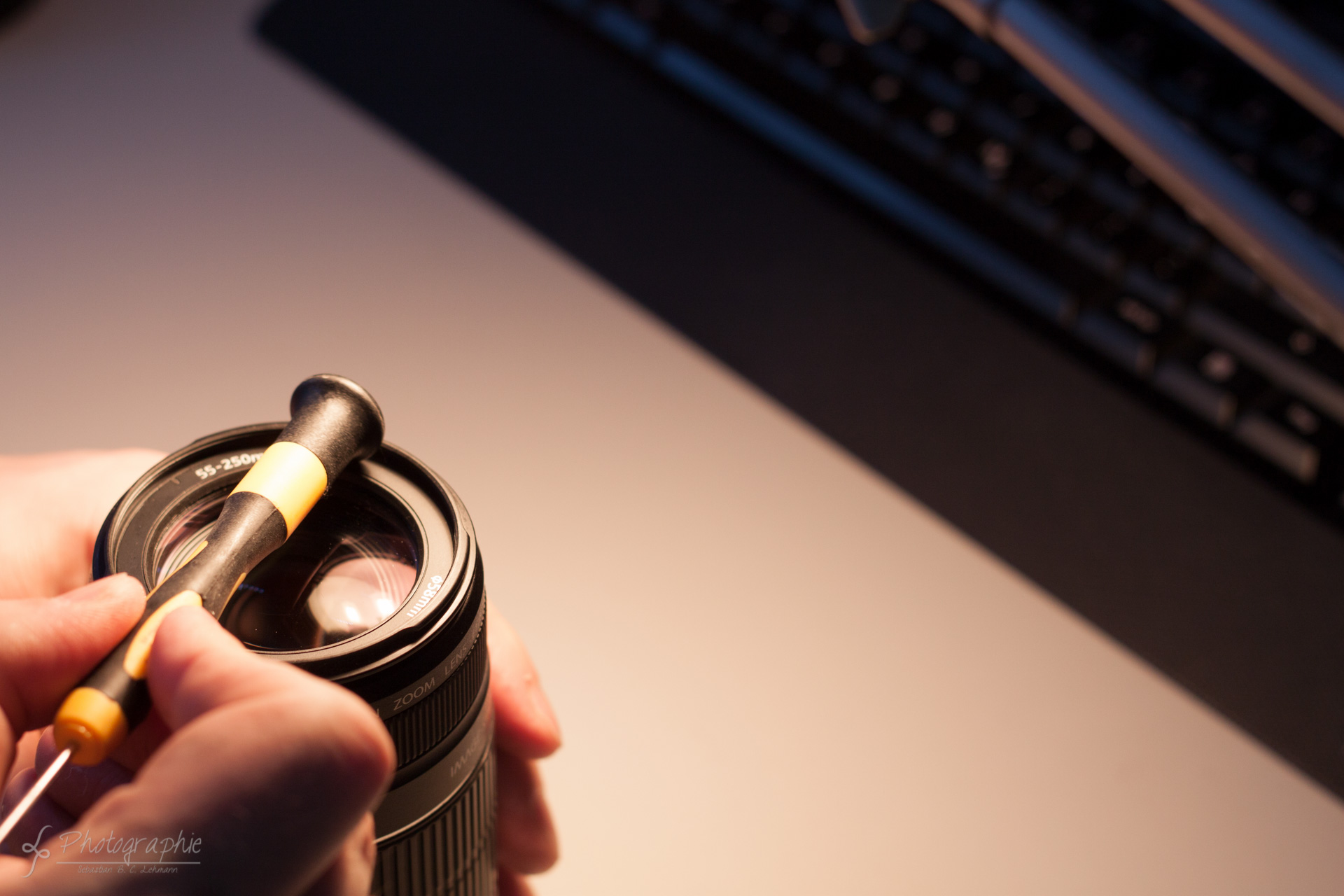 Die Frontlinse könnt ihr an dieser Stelle bereits mit dem Blasebalg reinigen.