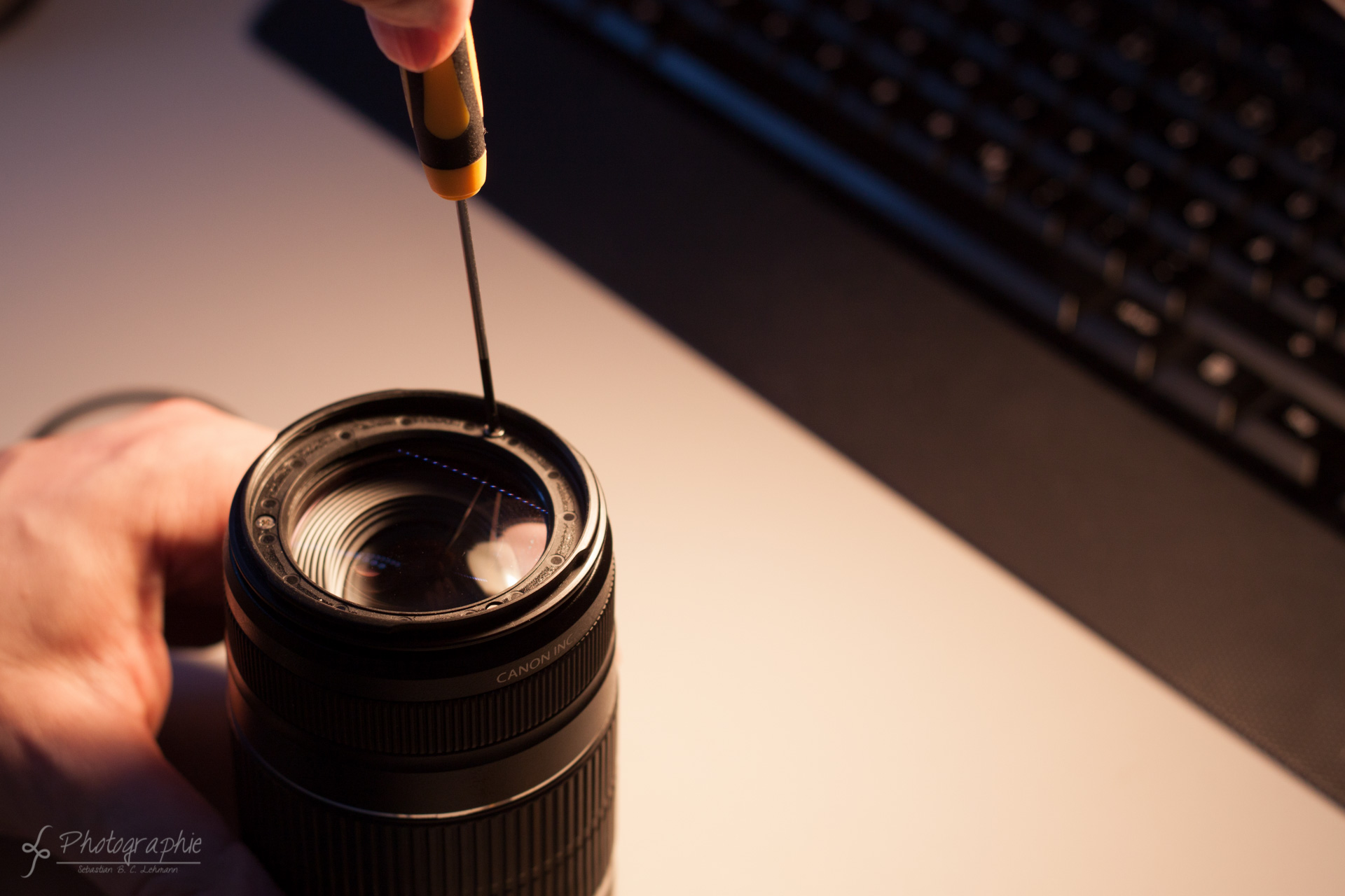 Da das Objektiv jetzt nicht so teuer ist und auch seinen Wert mehr als abgearbeitet hat, habe ich es einfach ohne Anleitung gemacht.