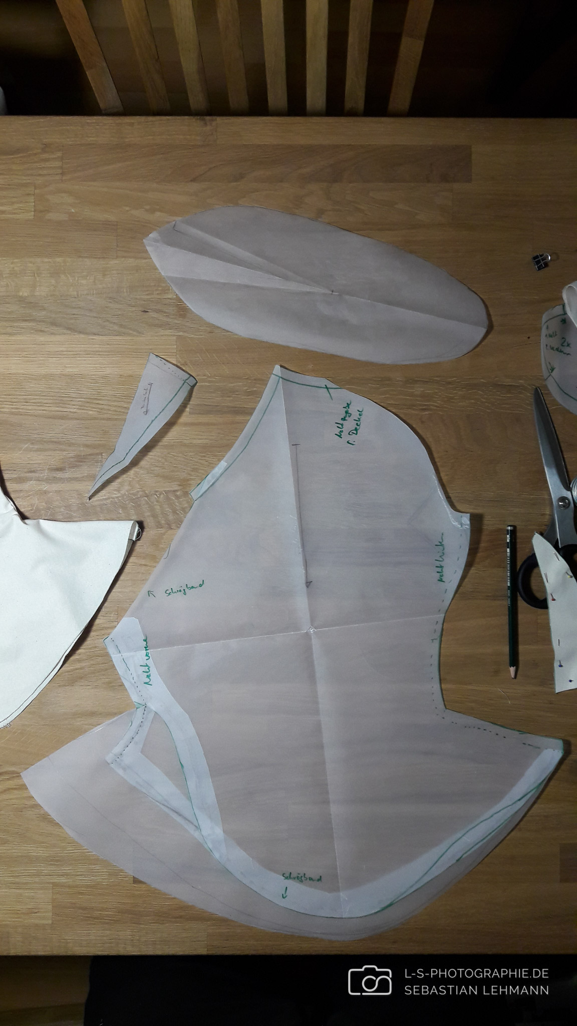 Karnevals-Kostüme habe ich schon vorher selbst geschneidert, aber so ein Cosplay-Outfit ist schon etwas anderes. Es soll ja später auf dem Foto auch authentisch wirken. Zuallererst galt es das Outfit des Charakters richtig zu studieren und dann zu überlegen, wie man es am besten umsetzt.